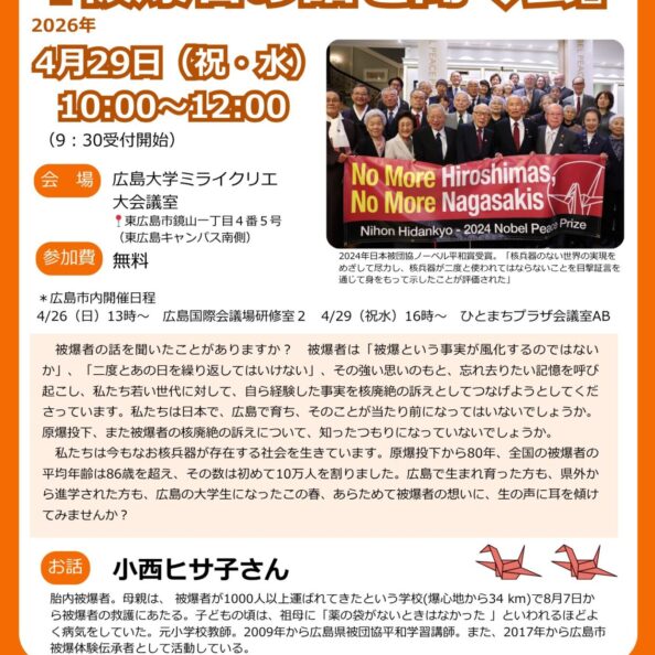 【日時】 2024年11月4日(日)10:00~12:00(9時40分受付開始) 【場所】 広...